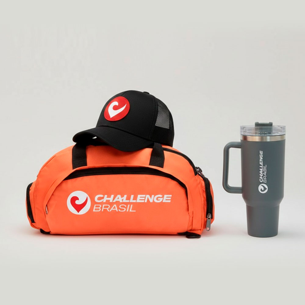 O espírito Challenge fora da linha de chegada. Para quem carrega a paixão pelo triatlo em todos os lugares. A Mala Challenge é robusta e versátil, ideal para viagens ou treinos diários. Mantenha-se hidratado com o Copo Térmico de alto desempenho, que preserva a temperatura da sua bebida por horas, e complete o estilo casual-esportivo com nosso Boné Trucker.